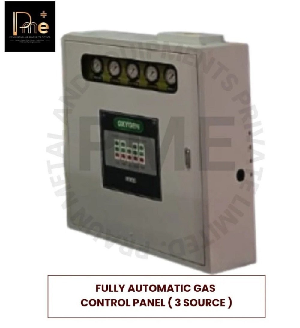 Our fully automatic control panel, compliant with NFPA 99, features a lockable metal cover for enhanced safety and durability, automatic saddle valve switching between gas sources, and a pressure-reducing design for stable output. It includes a clear pressure gauge/LED display, microprocessor-based PLC for maintenance, and color-coded hoses for safety. Audio and visual alarms activate upon gas source depletion, and it is suitable for O2, air, N2O, and CO2 applications.