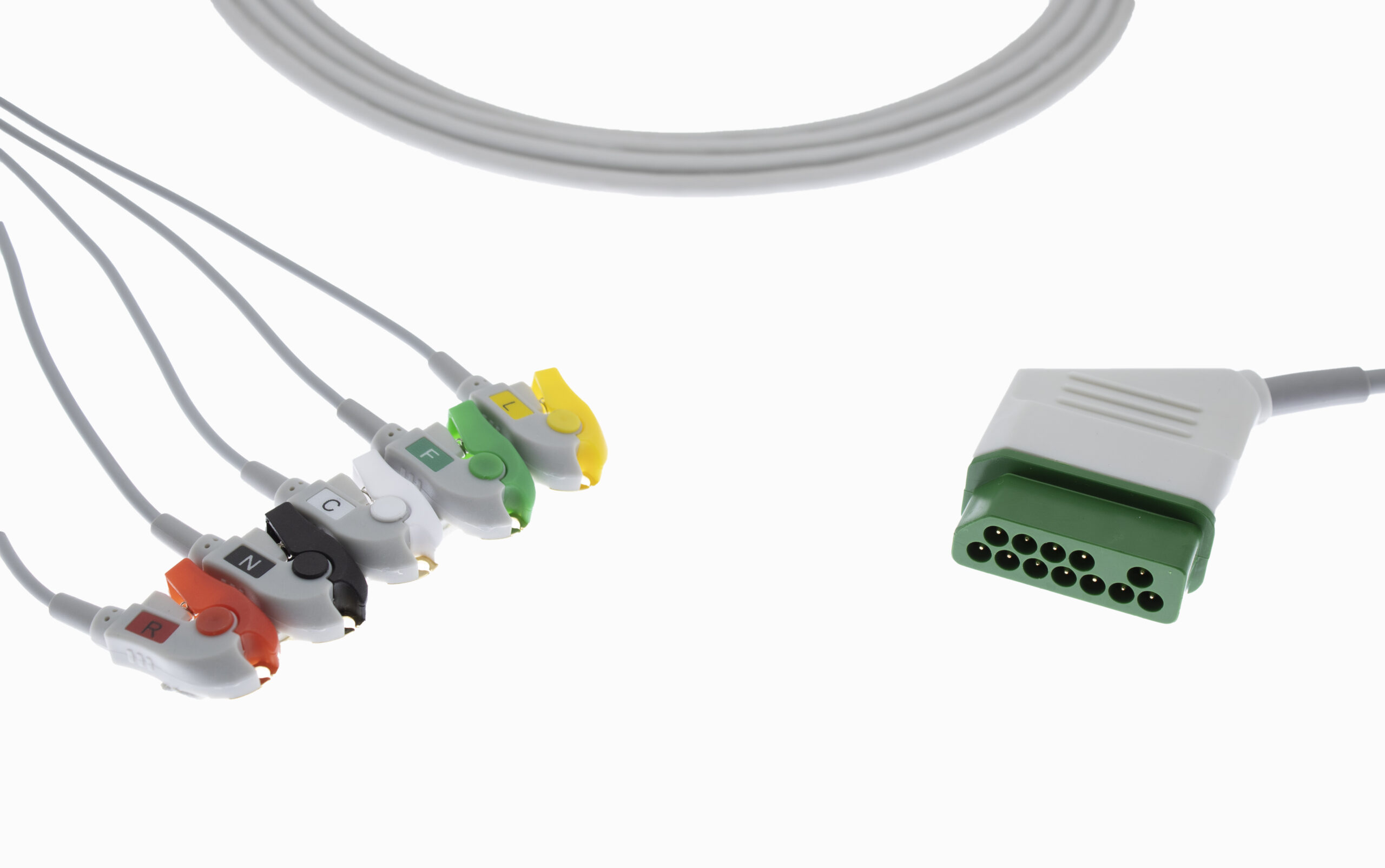 Connector Distal (Monitor end): L & T 12 pin 5 Lead Clip Type ECG Monitor Cable
