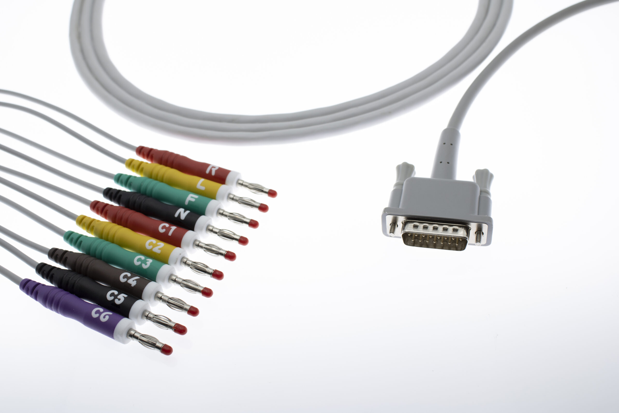Connector Distal (Monitor end) :PHILLIPS 10 LEAD ECG PATIENT CABLE – 4 MM BANANA – 22K.R